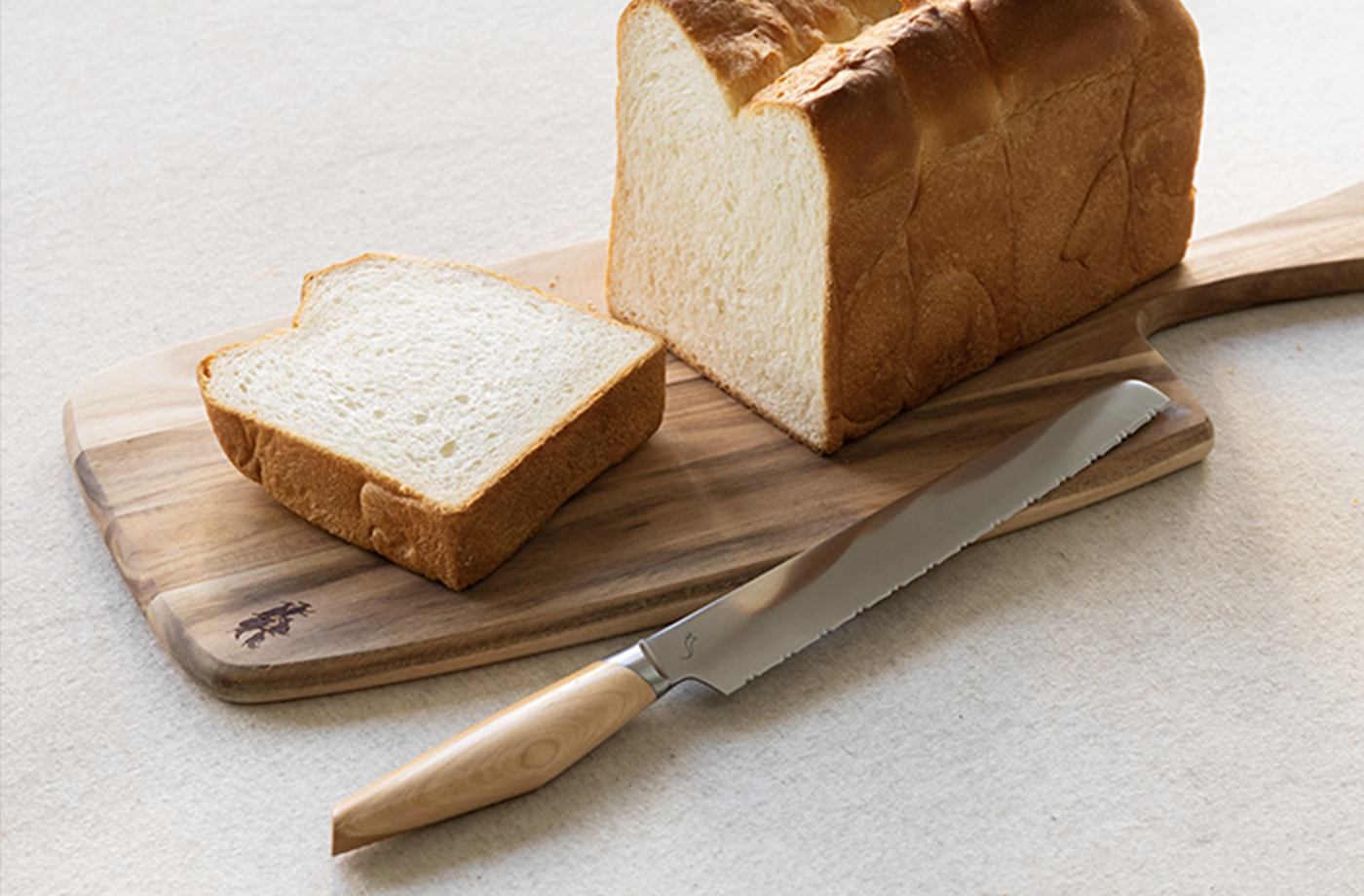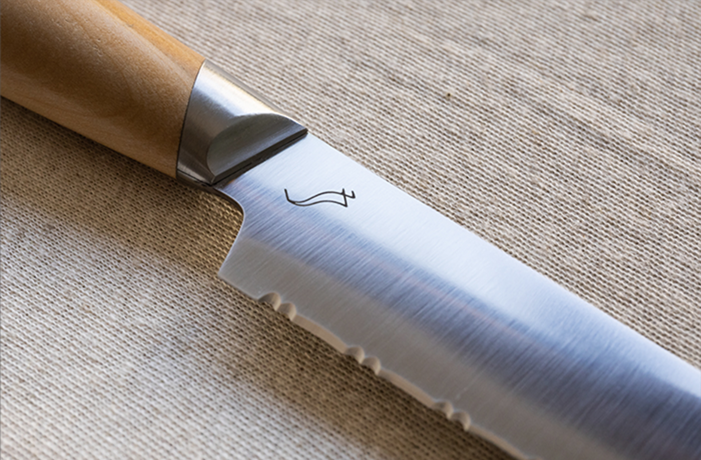 刃物の町・岐阜県関市にある老舗刃物メーカー・スミカマが製造する「kasane」シリーズのパン切り包丁。