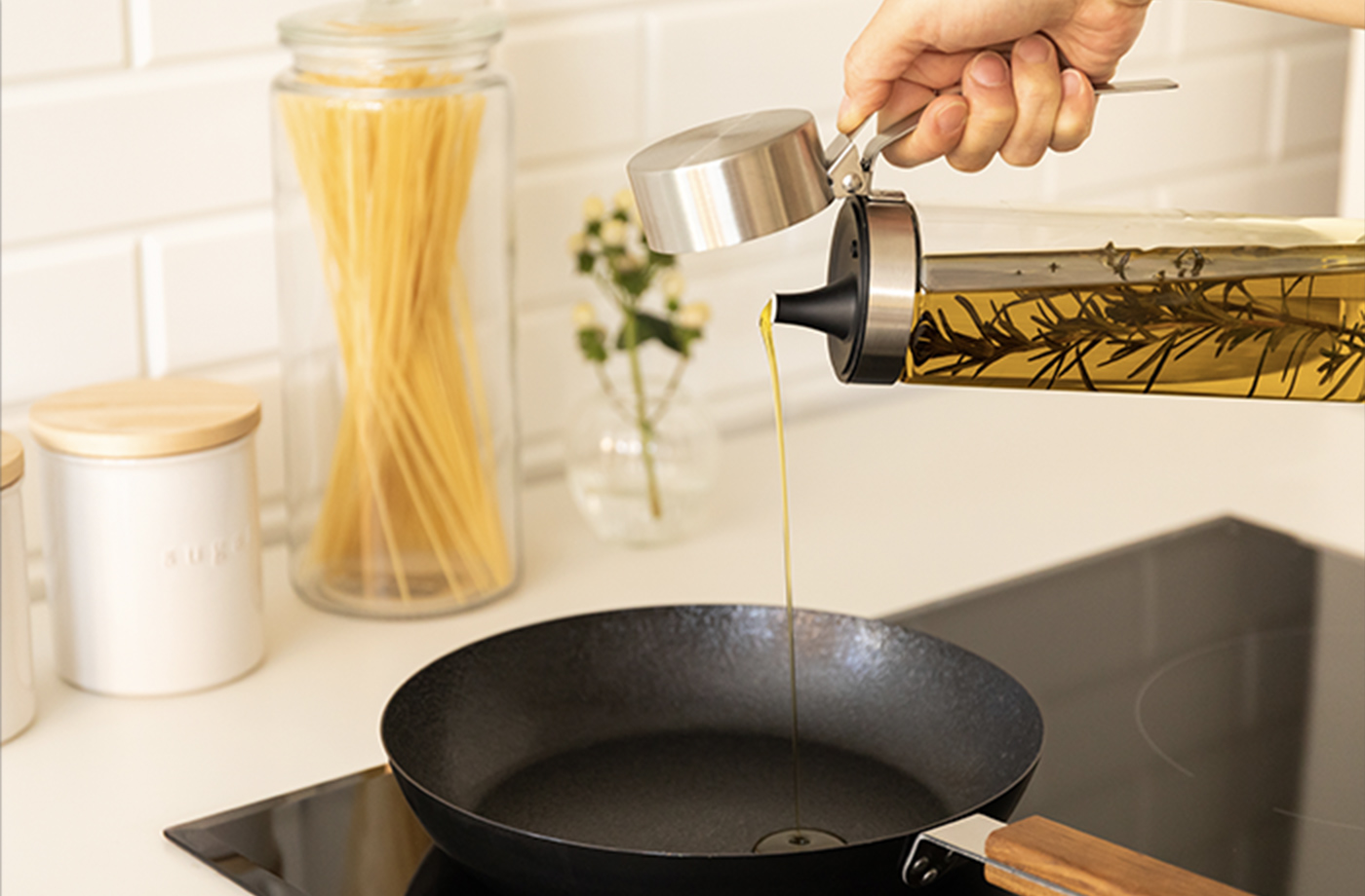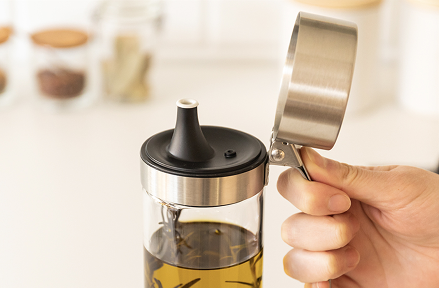シンプルに油やお酢を入れるほか、ニンニクや鷹の爪、ローズマリーなどを入れてオリジナルオイルを作るのもおすすめ。毎日の料理を快適に、そしてキッチンをさりげなくオシャレに見せてくれる名わき役です。