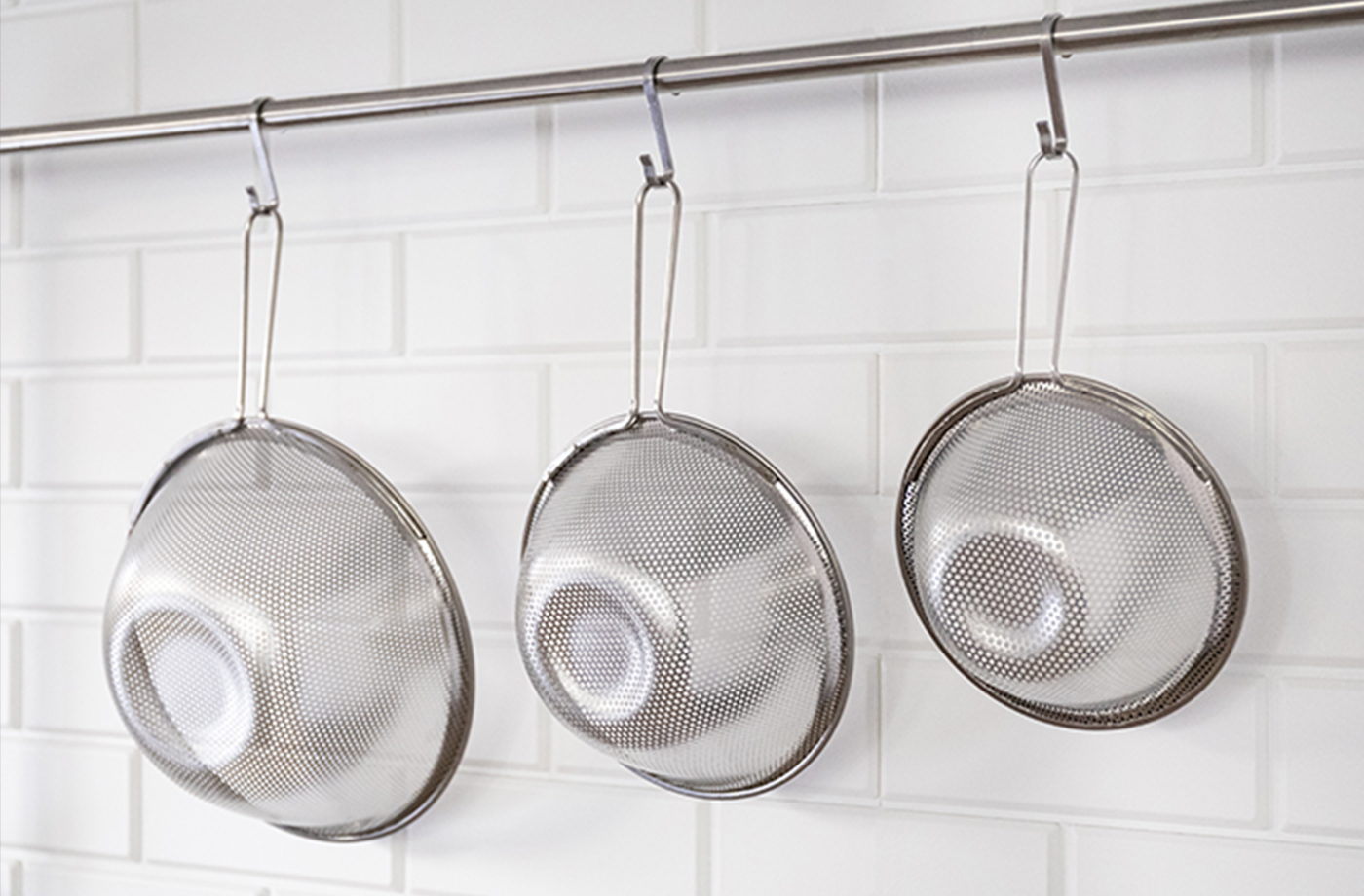 よくあるストレーナーと違って、網ではなく、ステンレスに穴が開いているデザインが特徴的。そのため、目詰まりや変形の心配がなく、洗うときもスポンジを引っかけることがありません。