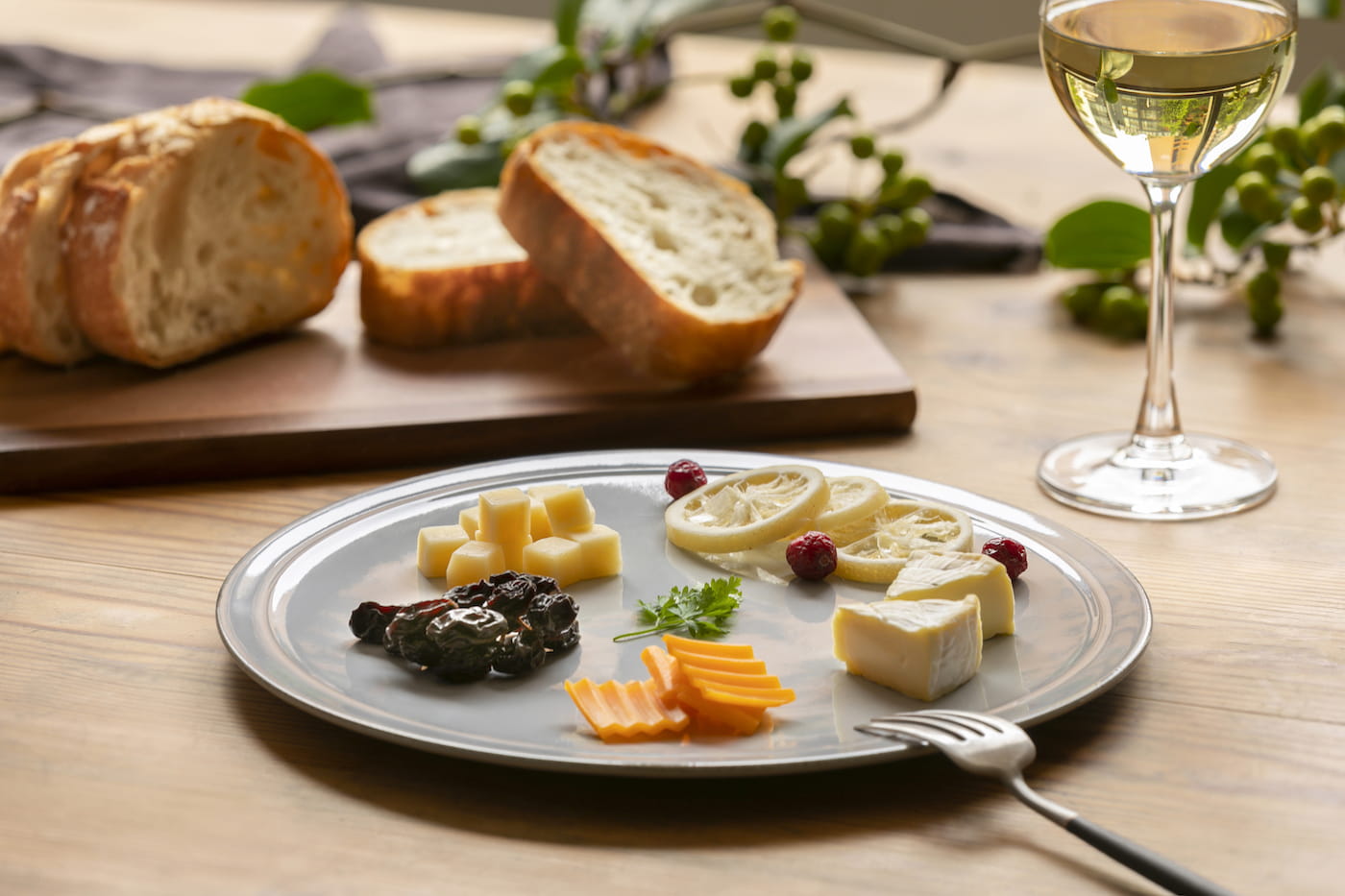 フラットなデザインは、チーズやハム、オードブルをのせたり、主食と副菜を一緒に盛りつけてワンプレート使いをしたり……と、さまざまな使い方ができるのが魅力。