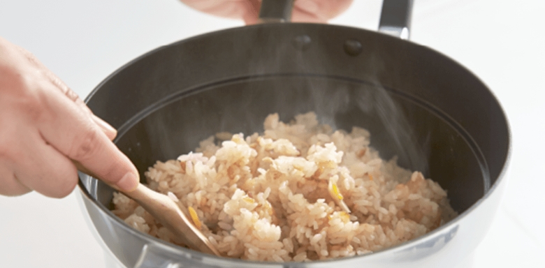 お米が十分に吸水するように火力調節。やわらかめのご飯がお好きな方にもおすすめです。