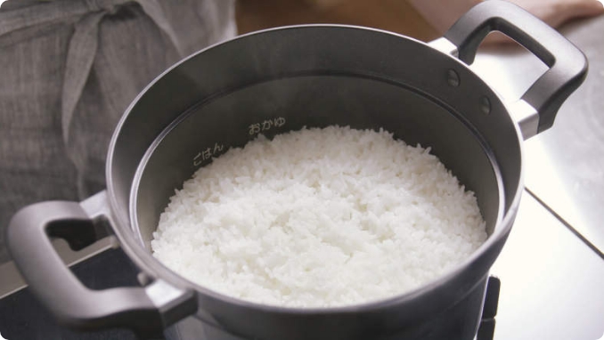 ボタンを押すだけでコンロが自動で火力調節し、炊き上げます。