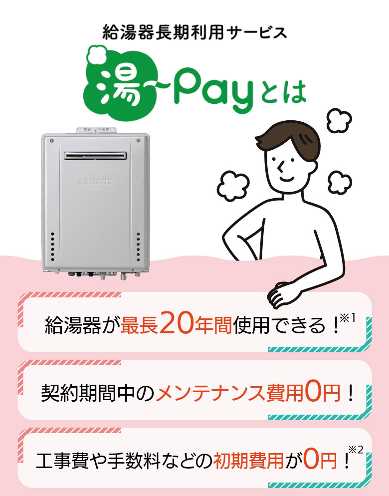 現在お使いの給湯器の後継機種が湯~Payの対象機器かについては、ぜひお問い合わせください。