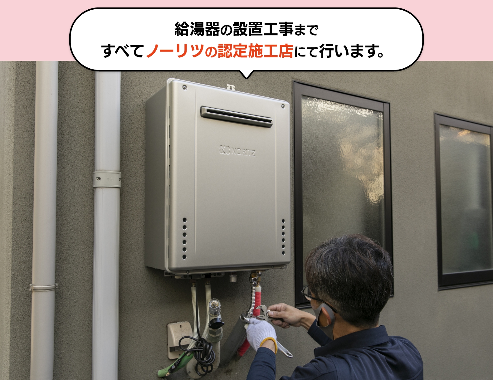 その後、ノーリツ認定施工店がご自宅に訪問し、機器設置状況の確認いたします。確認が完了しましたら、専用フォームにてお申込みいただけます。