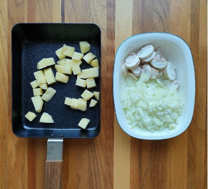 玉子焼きフライパンにじゃがいもと