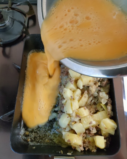 今回は、この玉子焼きフライパンでオランダ風オムレツを焼きました。