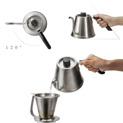 すでに「粕谷モデルシリーズ」と銘打ってシリーズ化されていますが、今回はネルドリップの奥深い味わいと職人が生み出すドリップスタイルをステンレス製で作ることが出来ないかと試行錯誤、独特な形状のスタンドにより、サーバーに置いても、手に持ってもドリップできる優れものを開発されました!使うとよりその良さが分かる、素晴らしい商品です。
