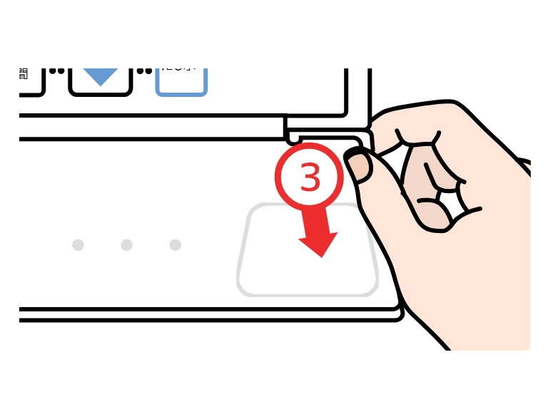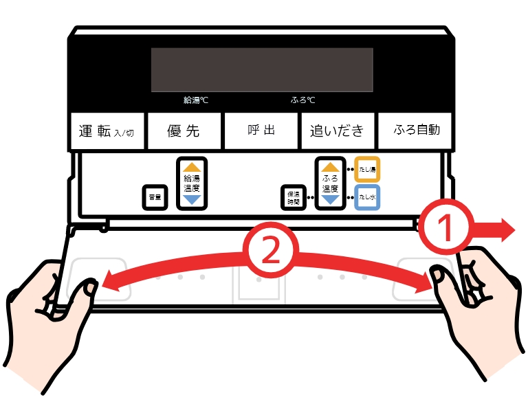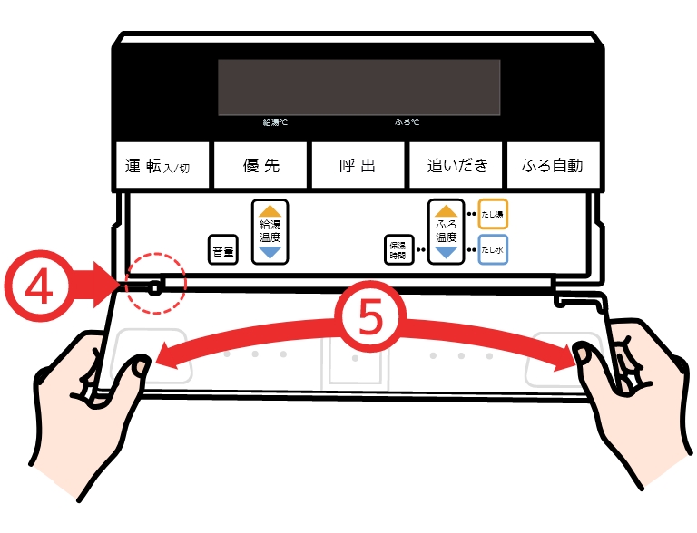 ③化粧蓋右側のリモコン固定部を手前に引き抜くことで化粧蓋を外します。
